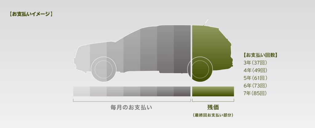 メリットプランはあらかじめ車両本体価格の一部を最終回のお支払い分として据え置く事で月々のお支払い額を軽減できる残価設定型プログラムです!